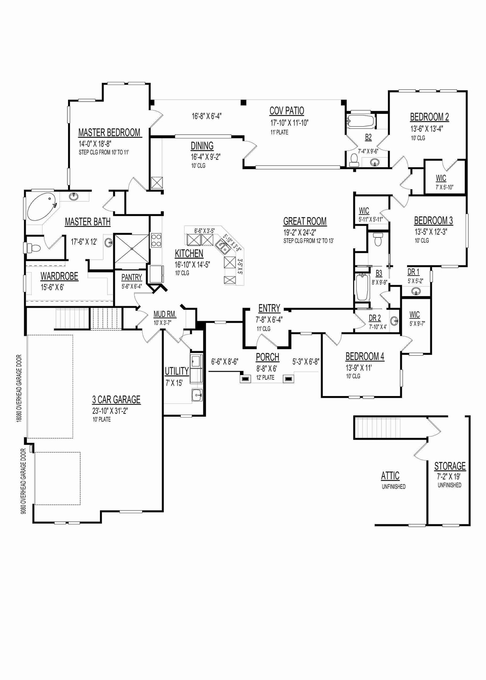 - 4 elevations (Front, Rear, Left, and Right)