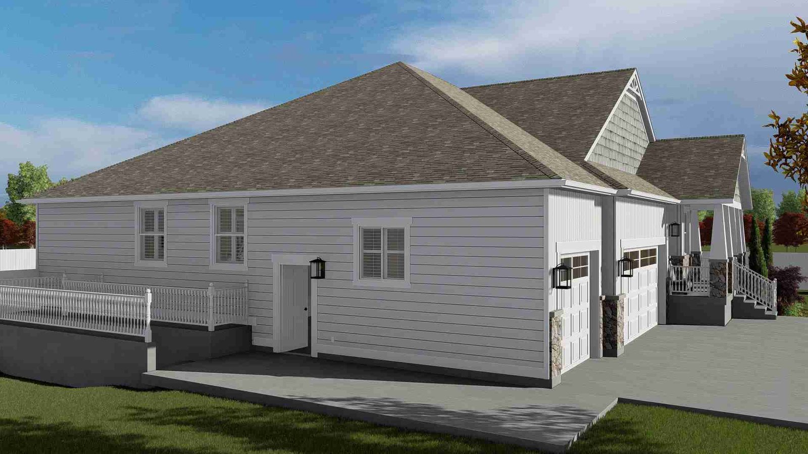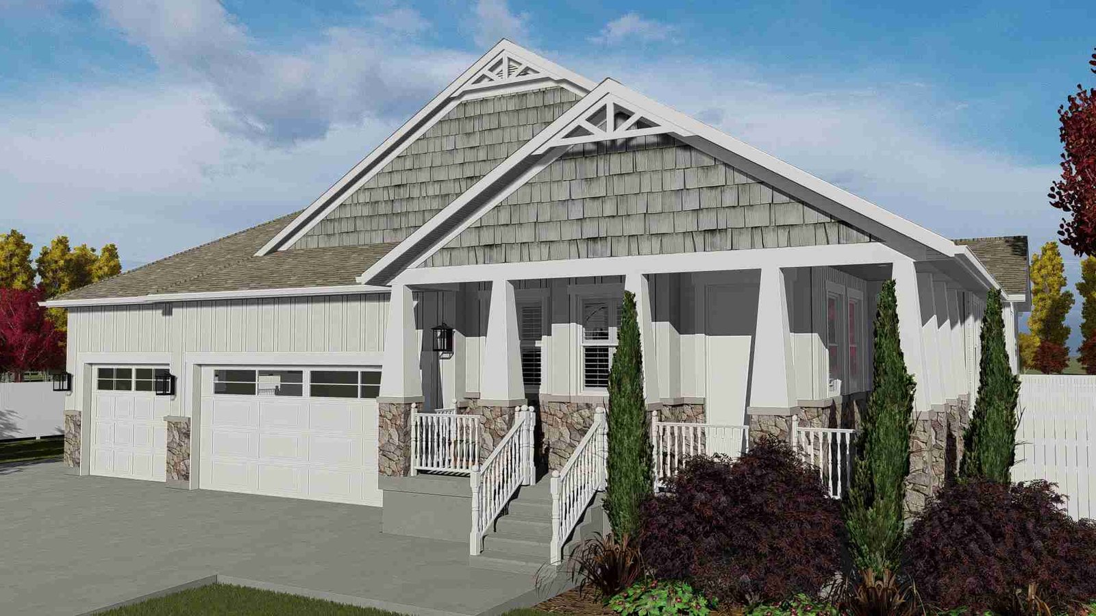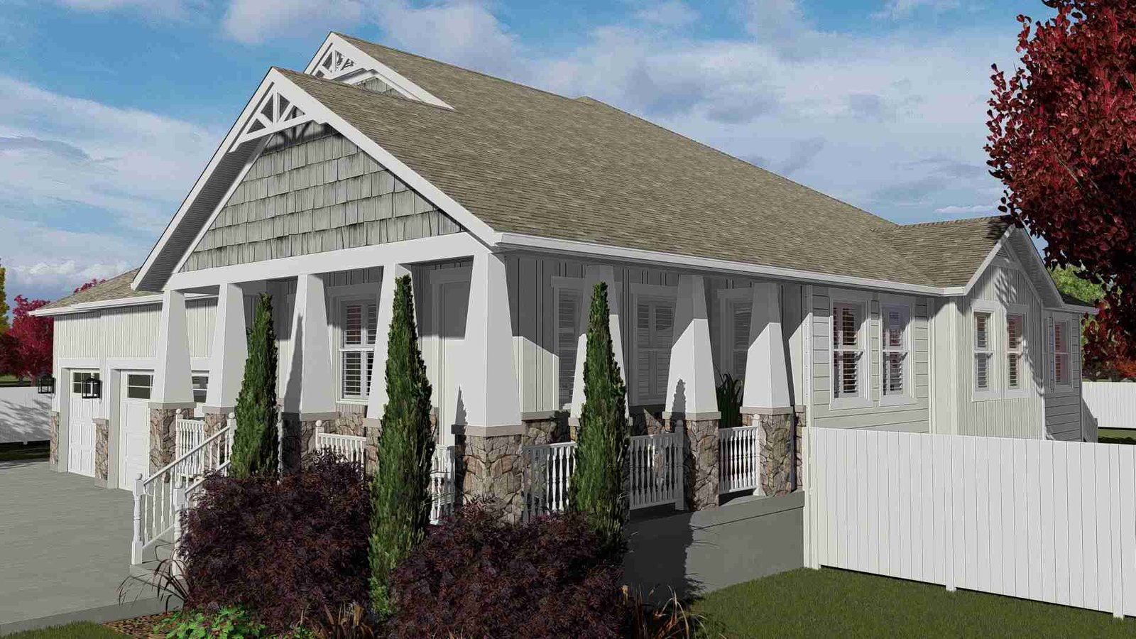 Plan 288-0136 Front view with gable roof and stone accents