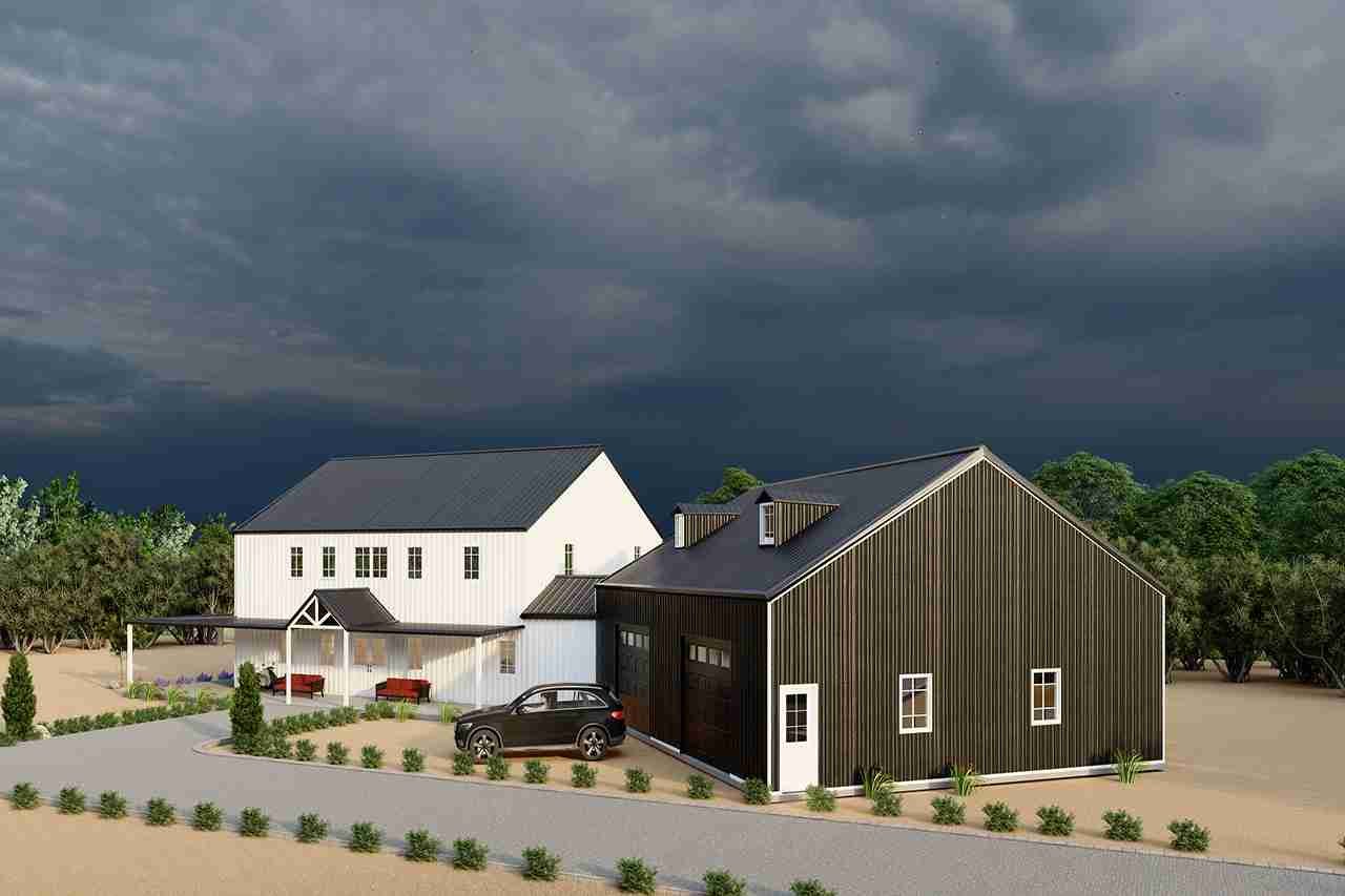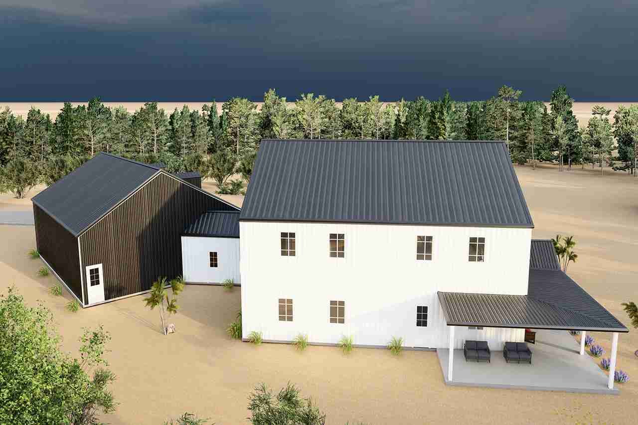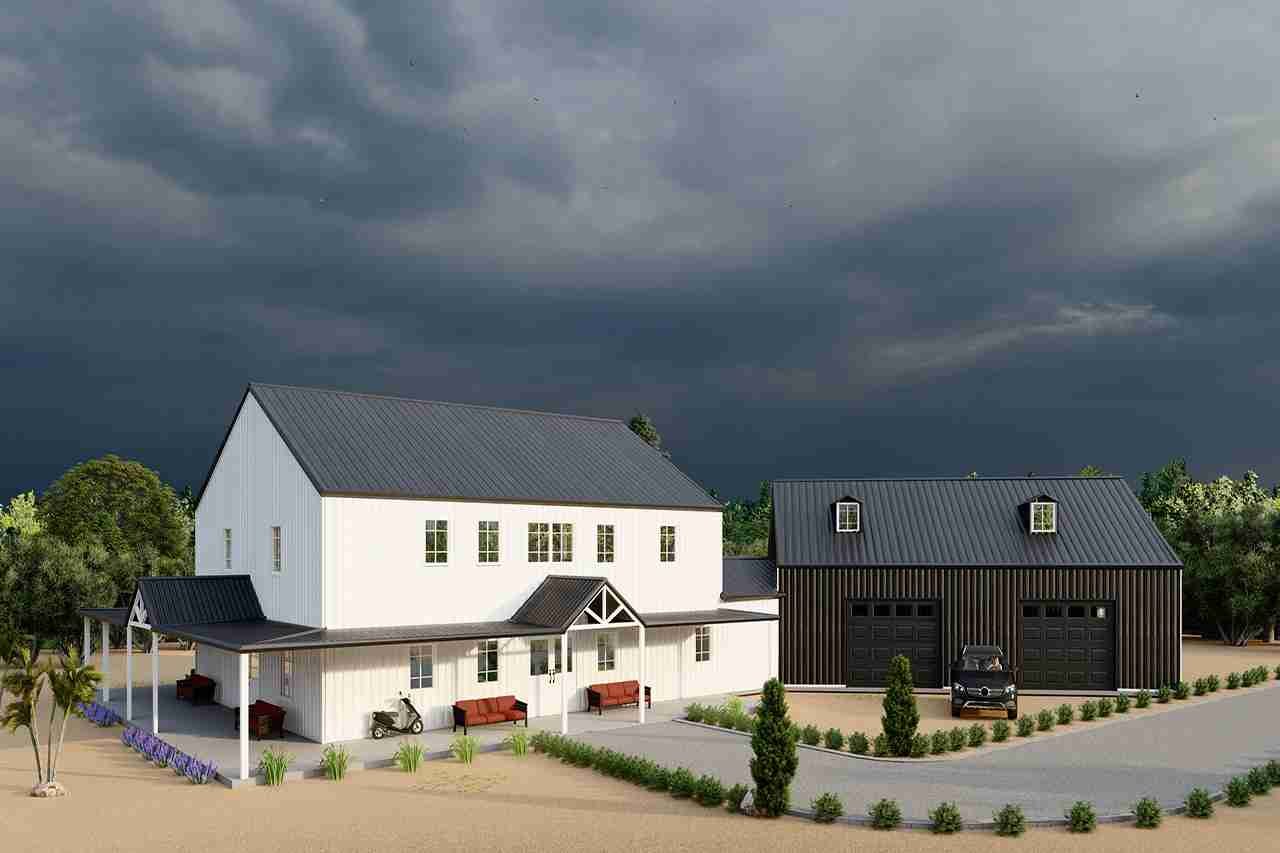 Introducing The Onyx, a stunning two-story barndominium that blends traditional farmhouse charm with modern functionality. With 3,672 square feet of living space, an attached 2,000 square foot shop/garage with a convenient half bath, and 1,250 square feet of wrap-around porch areas, The Onyx is thoughtfully designed for those who value space, style, and versatility.