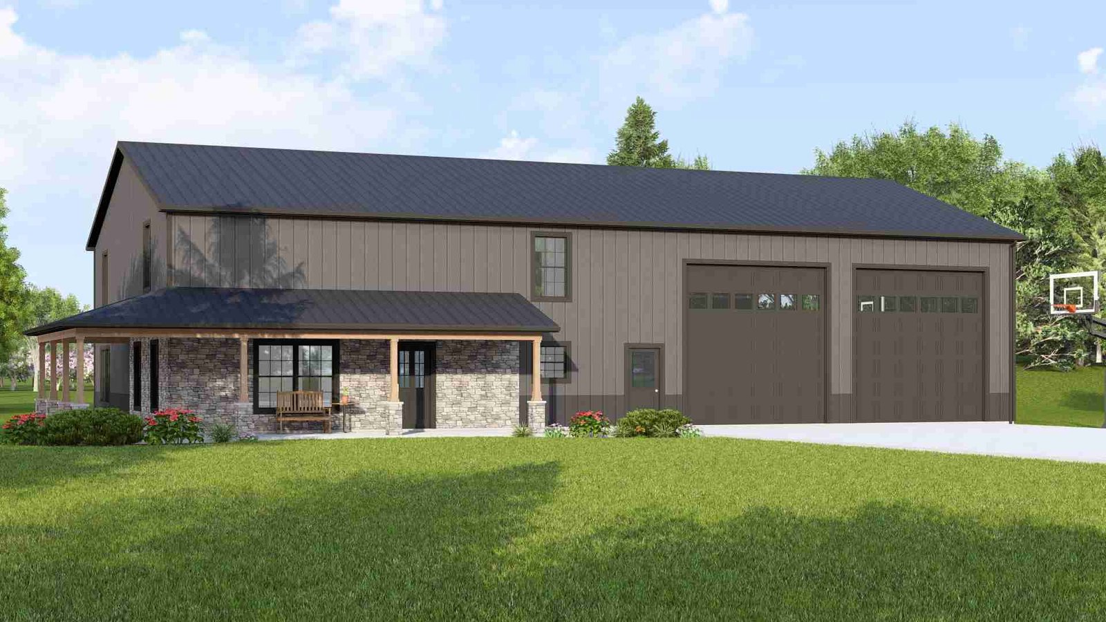 This Barndominium house plan includes 5 bedrooms, 3 full bathrooms, 1 half bathroom, and 3484 square feet, thoughtfully designed for comfort and functionality. House Plans Online is committed to equipping homeowners with detailed and practical plans to help create the perfect home. Each plan is purposefully crafted to balance functionality, efficiency, and charm.